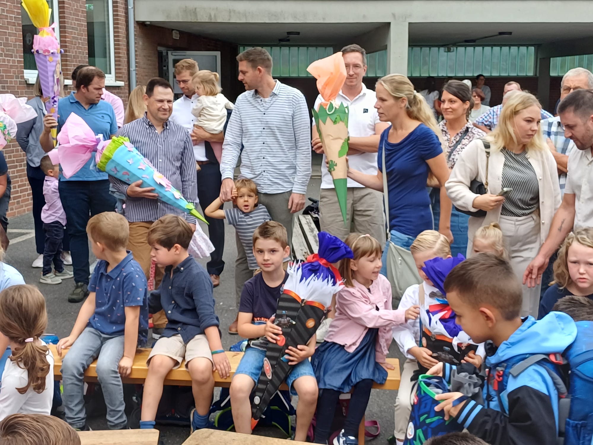 Am Donnerstag, dem 28. August 2025, wurden die neuen Grundschulkinder herzlich in unsere Schulgemeinschaft aufgenommen. Gemeinsam mit ihren Eltern und weiteren Gästen kamen die Kinder mit Schulranzen und liebevoll gestalteten Schultüten zum Einschulungsgottesdienst in die Kirche. Das Thema lautete „Wie in einem bunten Garten“ und stellte die Vielfalt und Einzigartigkeit jedes Kindes in den Mittelpunkt.