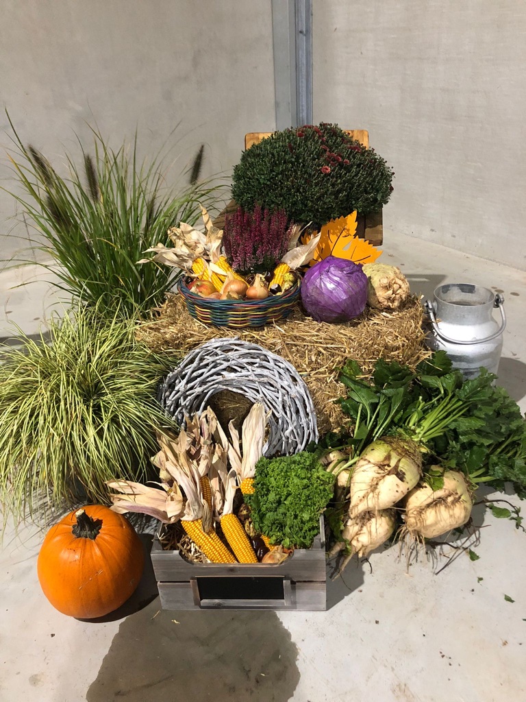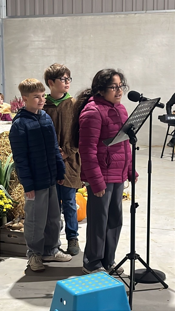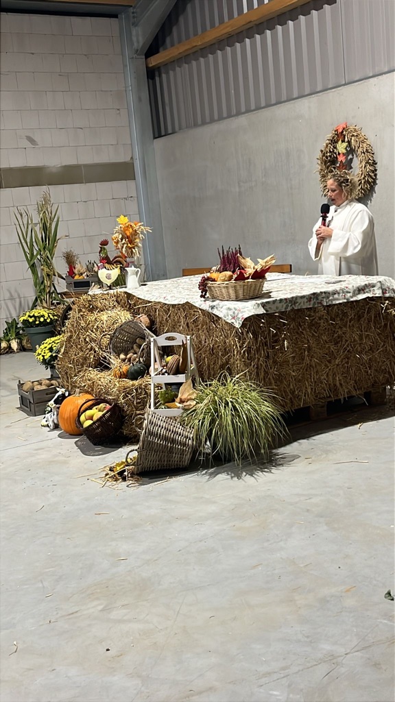 Am Montag, den 06.10.2025 starteten wir den Schulmorgen auf dem Schulhof mit der Woche der Ordnung, gezeigt von den ersten Schuljahren. Danach gingen alle Kinder und Lehrer zusammen zum Bauernhof von Familie Keimes in Straeten. Das Wetter spielte mit und so kamen alle um kurz vor neun trocken auf dem Bauernhof an. In der wunderschön geschmückten Scheune der Familie Keimes fand dann ein Erntedankgottesdienst mit der Gemeindereferentin Frau Heinrichs statt. Frau Heinrichs fragte die Kinder, was wir feiern würden im Gottesdienst. Die Antwort: „Erntedank“ kam sofort und wofür wir Gott danken können wussten die Kinder gut zu beantworten. Einige Kinder der Klasse 4a unterstützten beim Lesen der Kyrie Rufe und der Fürbitten. Zum Vaterunser reichten sich alle die Hände zu einer langen Gebetskette. Die Lieder wurden auf dem Keyboard von Herrn Küppers begleitet und alle Kinder und Erwachsenen sangen eifrig mit. Nach dem Gottesdienst führten ein paar Kinder der vierten Schuljahre vor der Scheune noch einmal den Erntetanz aus dem Joseph Musical auf. Dann verabschiedeten sich die Kinder und Lehrer und gingen zur Schule zurück. Das Ehepaar Keimes brachte anschließend alle Stühle und Bänke aus der Schule zurück, damit der Unterricht starten konnte als die Kinder wieder in der Schule waren. Dort gab es für alle Kinder ein Milchgetränk, das Familie Keimes organisiert hatte und von den Frauen des Fördervereins Äpfel und süße Brötchen. Dafür möchten wir „Danke“ sagen. Mit dem Frühstück endete der Ausflug zum Bauernhof. Wir möchten Familie Keimes an dieser Stelle ganz herzlichen Dank sagen für ihre Mühe und ihren Einsatz für den Erntedankgottesdienst. Das Bild der liebevoll bis ins kleinste Detail geschmückten Scheune wird Kindern und Erwachsenen in Erinnerung bleiben.